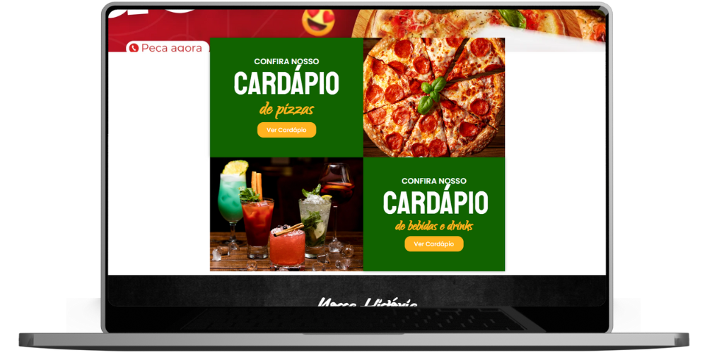 Cardápio de pizzas e drinks integrado com PDF original