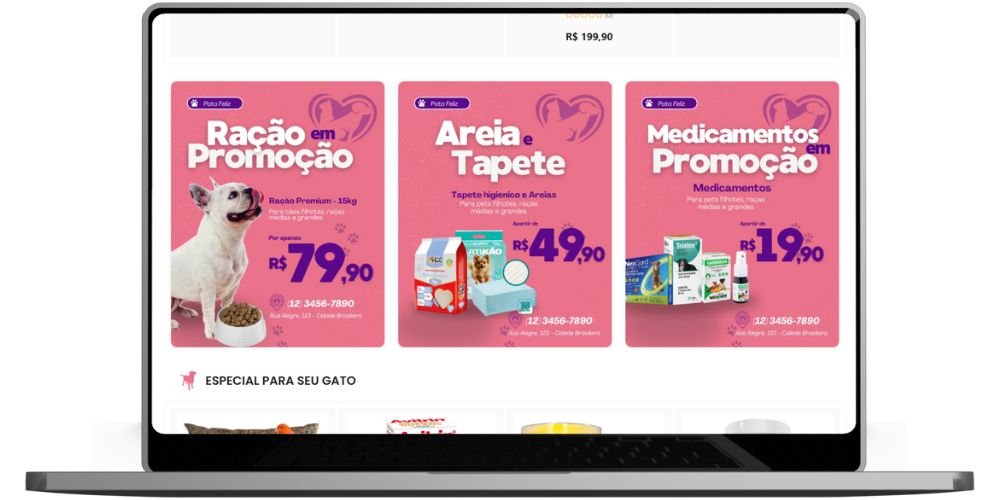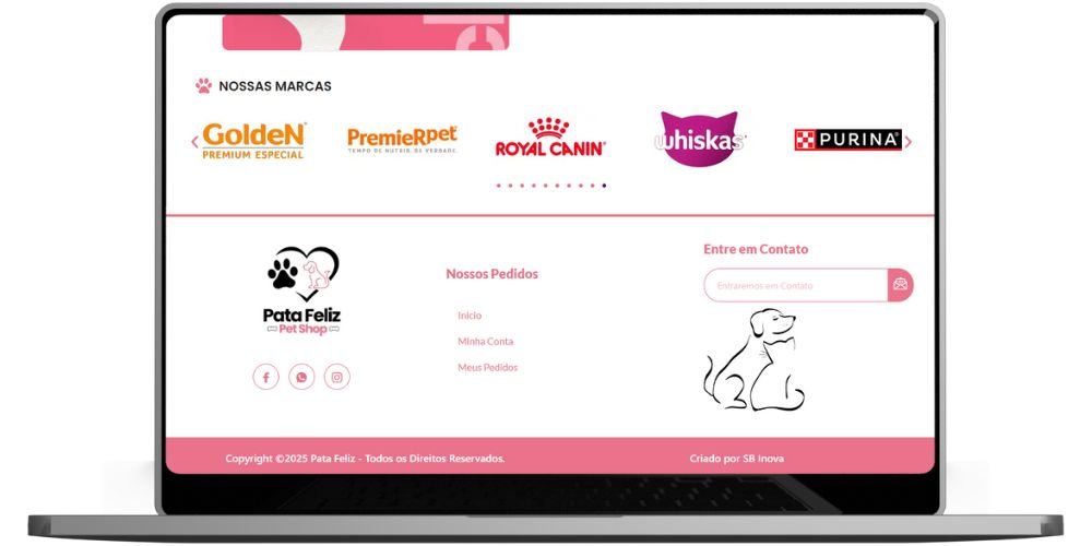 - Página inicial com destaque para os serviços ou produtos pet (banho & tosa, acessórios, rações premium)